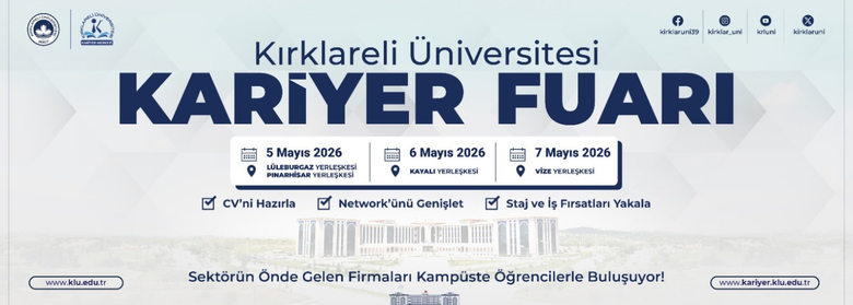 | KARİYER MERKEZİ MART AYI EĞİTİM PROGRAMI YAYINLANDI 770 Okunma Kırklareli Üniversitesi Kariyer Uygulama ve Araştırma Merkezi tarafından hazırlanan Mart 2026 Eğitim... | ||
