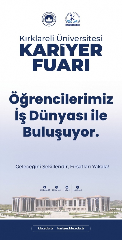 Kırklareli Üniversitesi Kariyer Uygulama ve Araştırma Merkezi Koordinatörlüğünde düzenlenecek Kariyer Fuarı, 05–07 Mayıs 2026 tarihleri arasında üniversitenin üç farklı yerleşkesinde gerçekleştirilecektir.